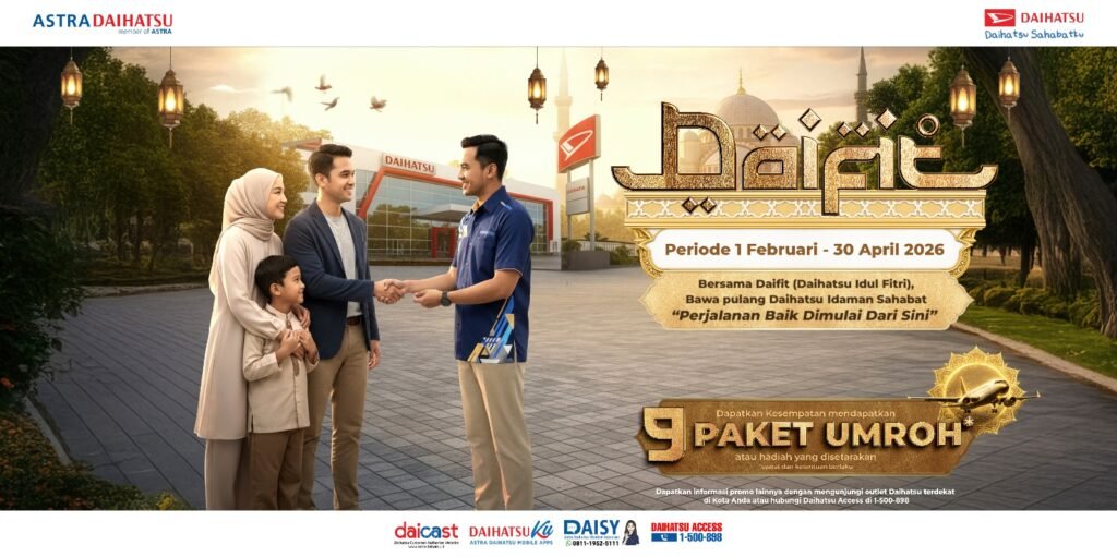 Program yang berlangsung selama periode 1 Februari hingga 30 April 2026 ini merupakan wujud nyata komitmen Daihatsu untuk terus mendampingi mobilitas masyarakat Indonesia.