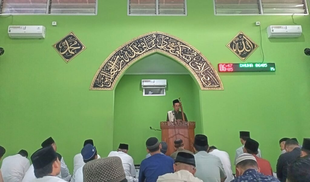 Bertindak sebagai Imam sekaligus Khotib, Ustadz Sholihin menyampaikan khotbah yang menyentuh hati mengenai diterimanya amal ibadah puasa. Ia mengingatkan jamaah tentang tiga doa Malaikat Jibril yang sangat krusial bagi setiap Muslim.
