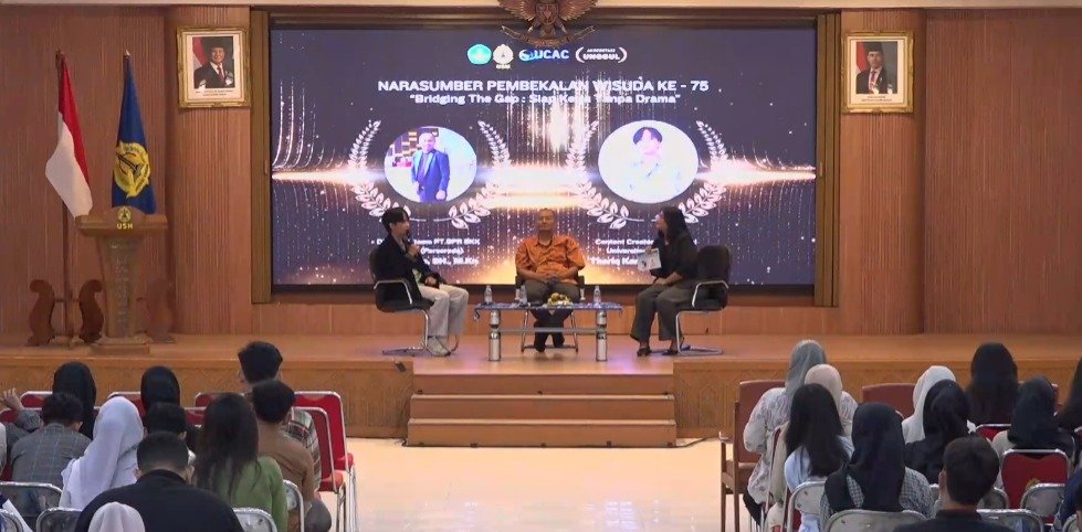 Kegiatan Pembekalan dan Sosialisasi Wisuda ke-75 Universitas Semarang yang mengambil tema “Bridging The Gap: Siap Kerja Tanpa Drama” itu menghadirkan narasumber yaitu Direktur Utama PT.BPR.BKK Jateng (Perseroda) Koesnanto, SH., M.Kn yang diwakilkan oleh Yuli Sri Mulyanto dan Thariq Kamaludin, S.Kom (Content Creator dan Alumni Universitas Semarang).