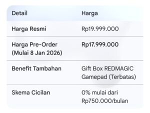 BERITASEMARANG.ID  – Batasan performa mobile gaming resmi didobrak hari ini. REDMAGIC 11 Pro secara resmi memulai debutnya di Indonesia sebagai smartphone pertama di dunia yang mengadopsi AquaCore Cooling System. Tidak tanggung-tanggung, perangkat ini mencetak skor fantastis di AnTuTu sebesar 4.398.000, menjadikannya monster performa paling dingin di industri saat ini.