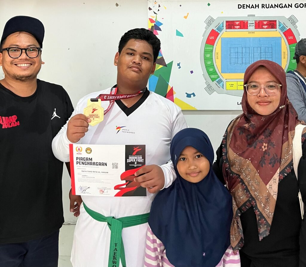 BERITASEMARANG.ID  – Aura juara terpancar kuat di GOR Amongrogo, Yogyakarta, saat Rafa Fahd Rifai Al Hakam, atlet taekwondo muda asal Semarang, berhasil mengukuhkan dominasinya di ajang bergengsi Kejuaraan Nasional (Kejurnas) Indonesia Super Fight Vol. 3 Tahun 2025.
